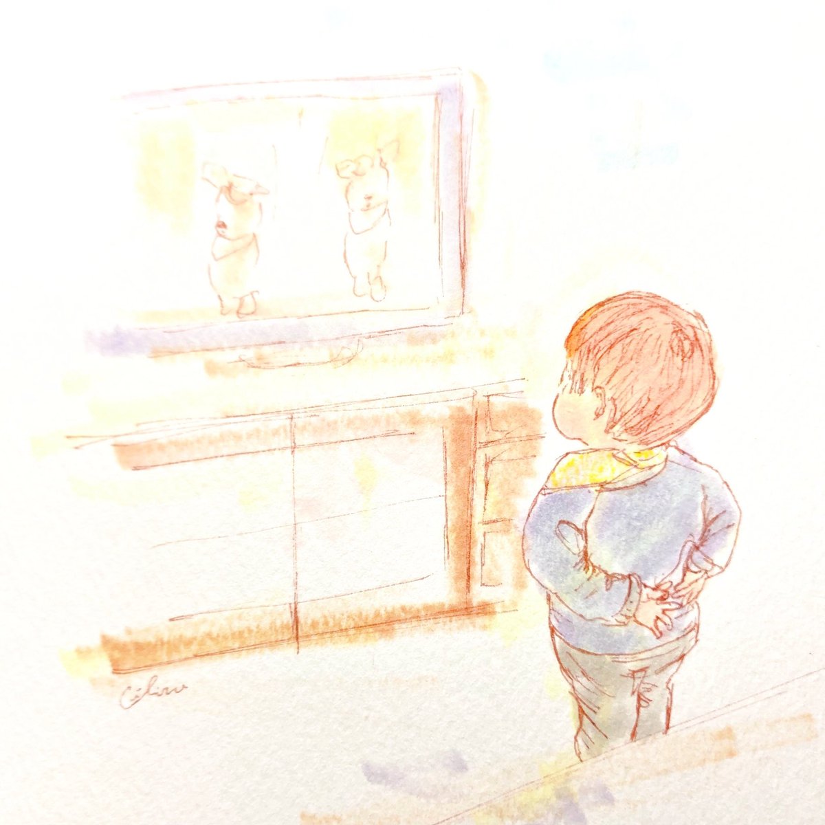 #ドローイング #こども #似顔絵 #イラスト #テレビ鑑賞
