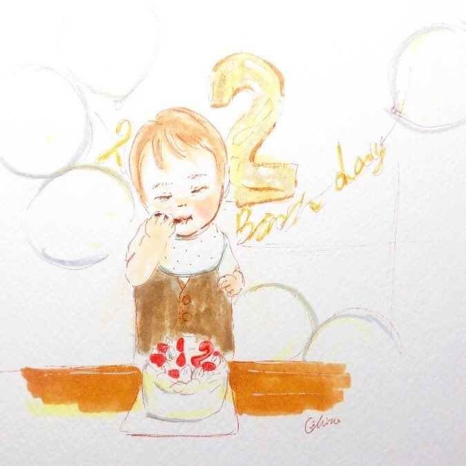 #はじめてチョコを食べた男 #2歳 #2歳誕生日 #似顔絵 #イラスト #ドローイング