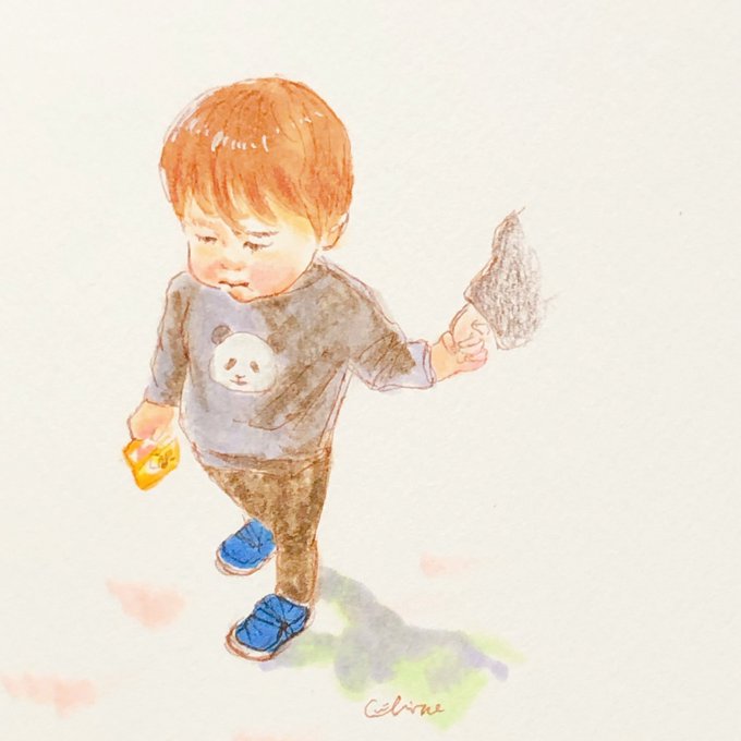 0 9 ほっぺたと おなかと おしり の曲線が 堪らない、、🥺 #イラスト #ドローイング #こども #わなげを鞄のように持つ 22/05/19 20:54