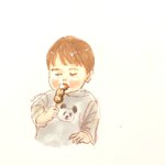 0 2 #似顔絵 #ドローイング #イラスト #こども #2才8ヶ月 #食べながら寝てる #寝ながら食べてる #ソフトクリーム #水彩色鉛筆 #コピック 23/03/25 16:08
