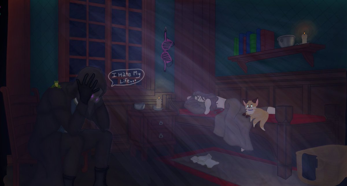 Just my boy having a hell of a time with the party's succubus trying to seduce him. Unfortunately for her he's married and GAY! Lol (Ref was used for setting) #DnD#dnd5e#DnDcharacter#dndart#digitalart