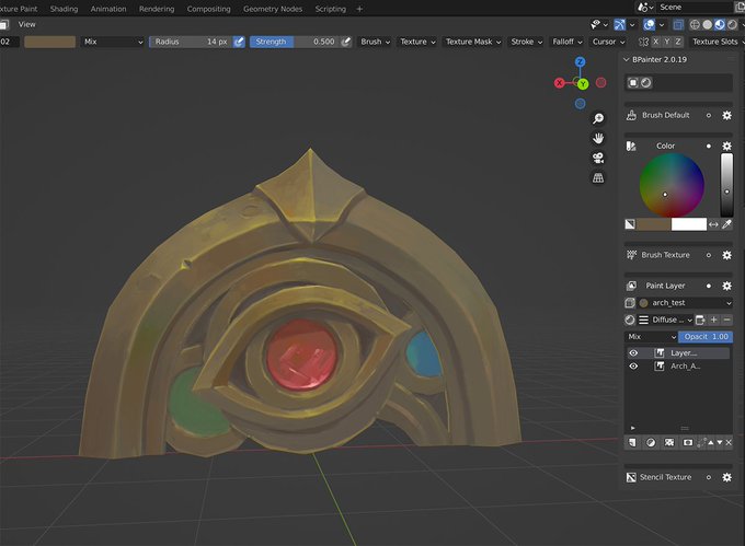 Was gonna do a quick texture pass, but I gave into curiosity and gave the Bpainter plug-in a try. 10/10 worth the noob frustration in getting things working. It made painting feel so much better that I'm going for a more finished look to indulge myself... WIP! #Blender3d