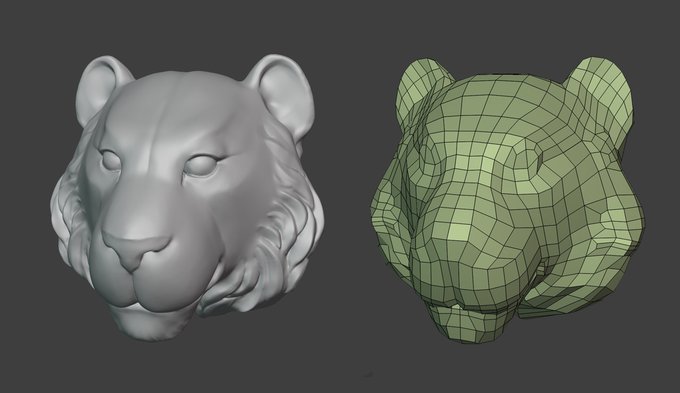 Part of why I had issues getting into highpoly workflow is retopo felt like a pain. So I finally bit the bullet and tried out how it feels in Blender. It honestly feels so much easier? Snapping actually makes sense. Shrinkwrap modifier and grid fill are awesome. #b3d #Blender3d