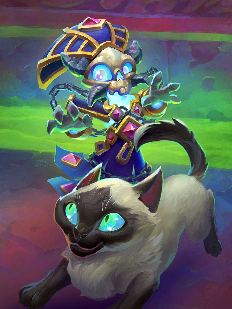 This is one of my favorites ever, because honestly nobody gets paid to paint cats and chibi villain's often enough. illustration done for #Hearthstone Battlegrounds expansion, Lil' X.T.