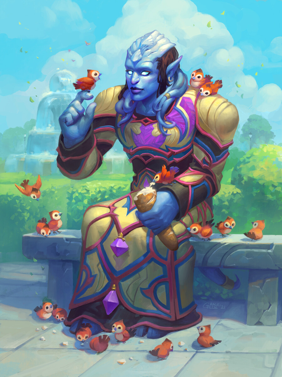 Another #Hearthstone card posted and filing away: Bird Buddy, done for Battlegrounds expansion. Rather enjoyed this one, it's literally made of many of my favorite things, yes bread too.