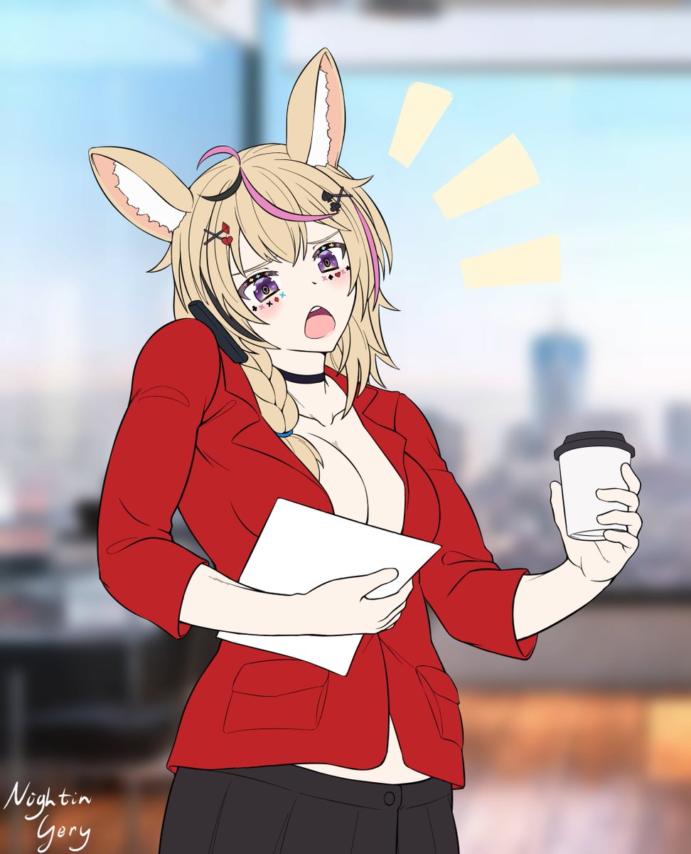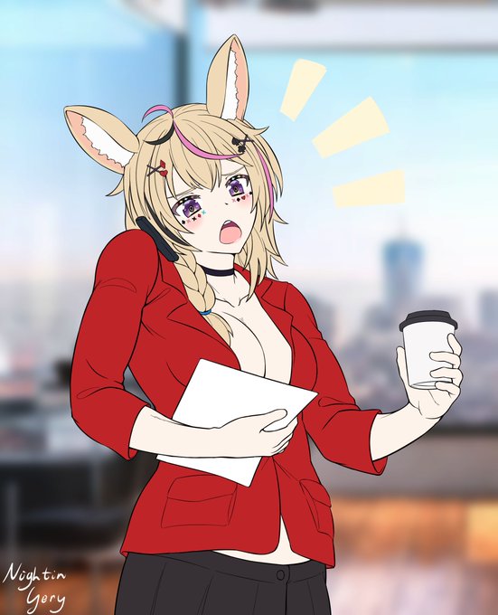 Day 22 and 24 - Cashier Oga and housewife Fubuki having a friendly chat (will be finished later like many others) #HOLOctober #絵フブキ #オウ画