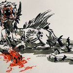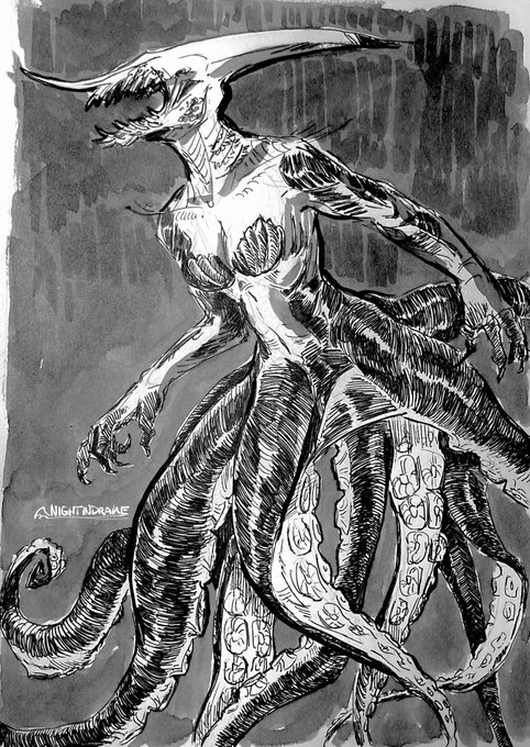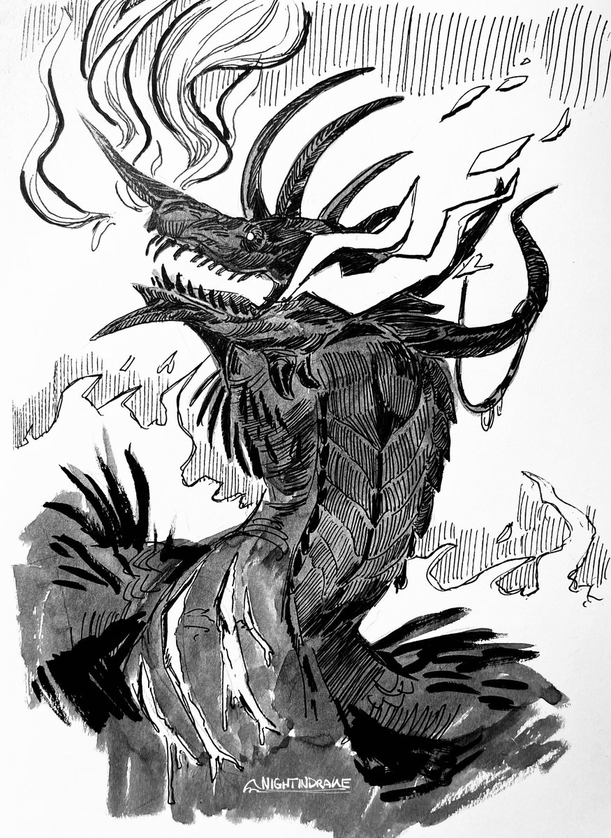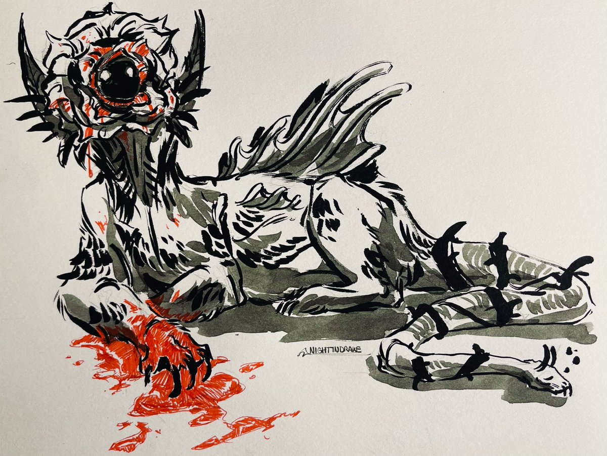 Here's a close up from when I was working on it! Red bat inspired head :3 #inktober2022 #inktober2022day3 #Monstober2022