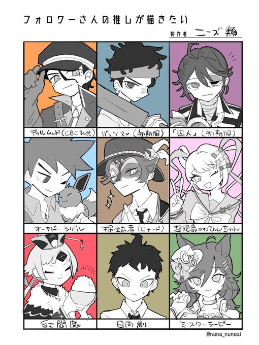 8 27 #フォロワーさんの推しが描きたい 完成しました〜めちゃくちゃたのしかた 下の三枠は余ったので自分の推しを詰めた リプいただきありがとうございました❗️ 23/05/28 22:14