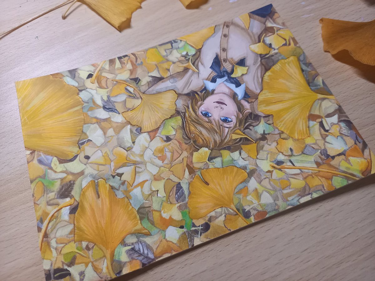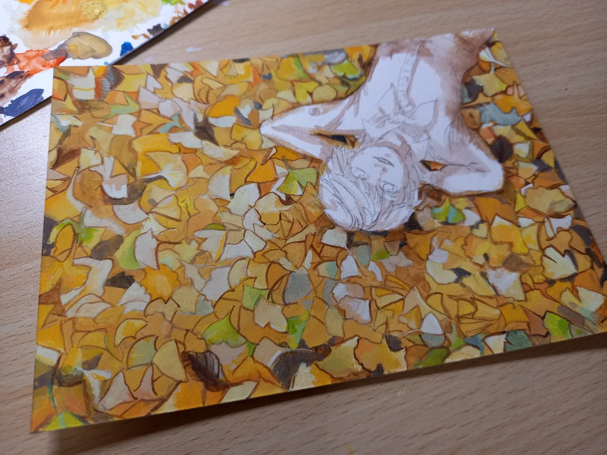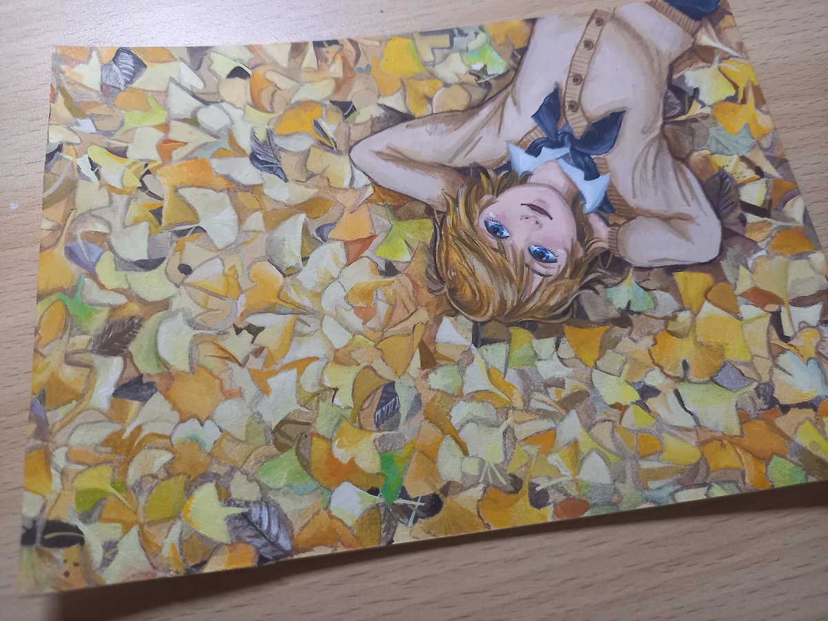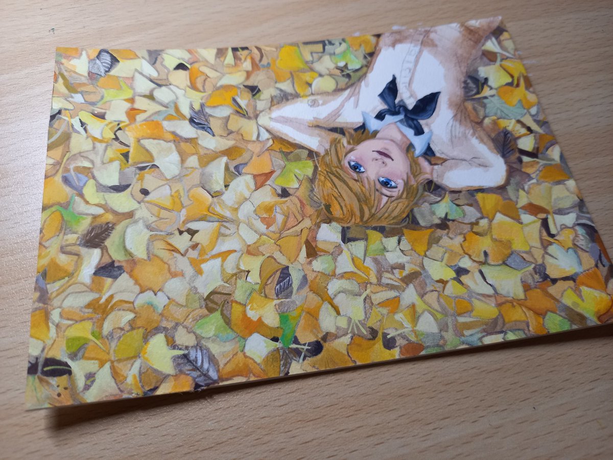突然の思い付きにより、これをこう! イチョウが舞ってる #絵描きさんと繫がりたい #イラスト #illustraion #イラスト好きさんと繋がりたい #お絵描き #冬の創作クラスタフォロー祭り #アナログ絵 #アクリルガッシュ #art #Artist