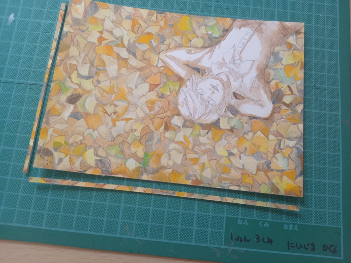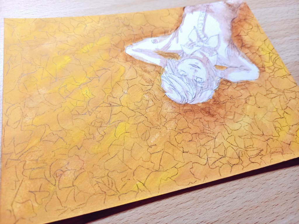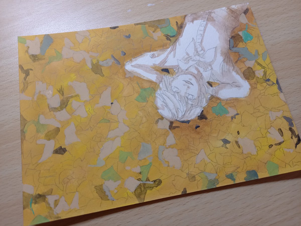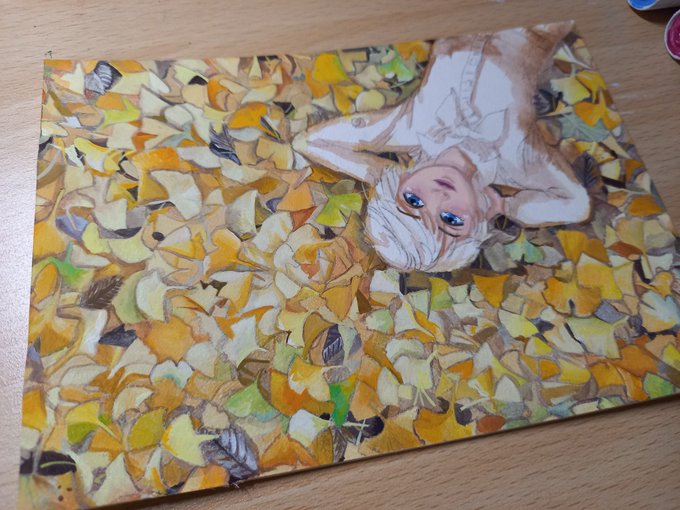 突然の思い付きにより、これをこう! イチョウが舞ってる #絵描きさんと繫がりたい #イラスト #illustraion #イラスト好きさんと繋がりたい #お絵描き #冬の創作クラスタフォロー祭り #アナログ絵 #アクリルガッシュ #art #Artist
