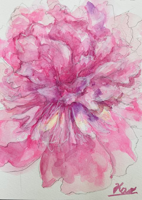 水彩のにじみは乾いてみないとわからない部分が大きくて、それがまた楽し。 チューリップ描いてたけど、力抜いてさらっと描いたものの方がよかったりするのって、あるあるですよねー #水彩 #透明水彩 #アナログ絵描きさんと繋がりたい #絵描きさんと繋がりたい #花を描く