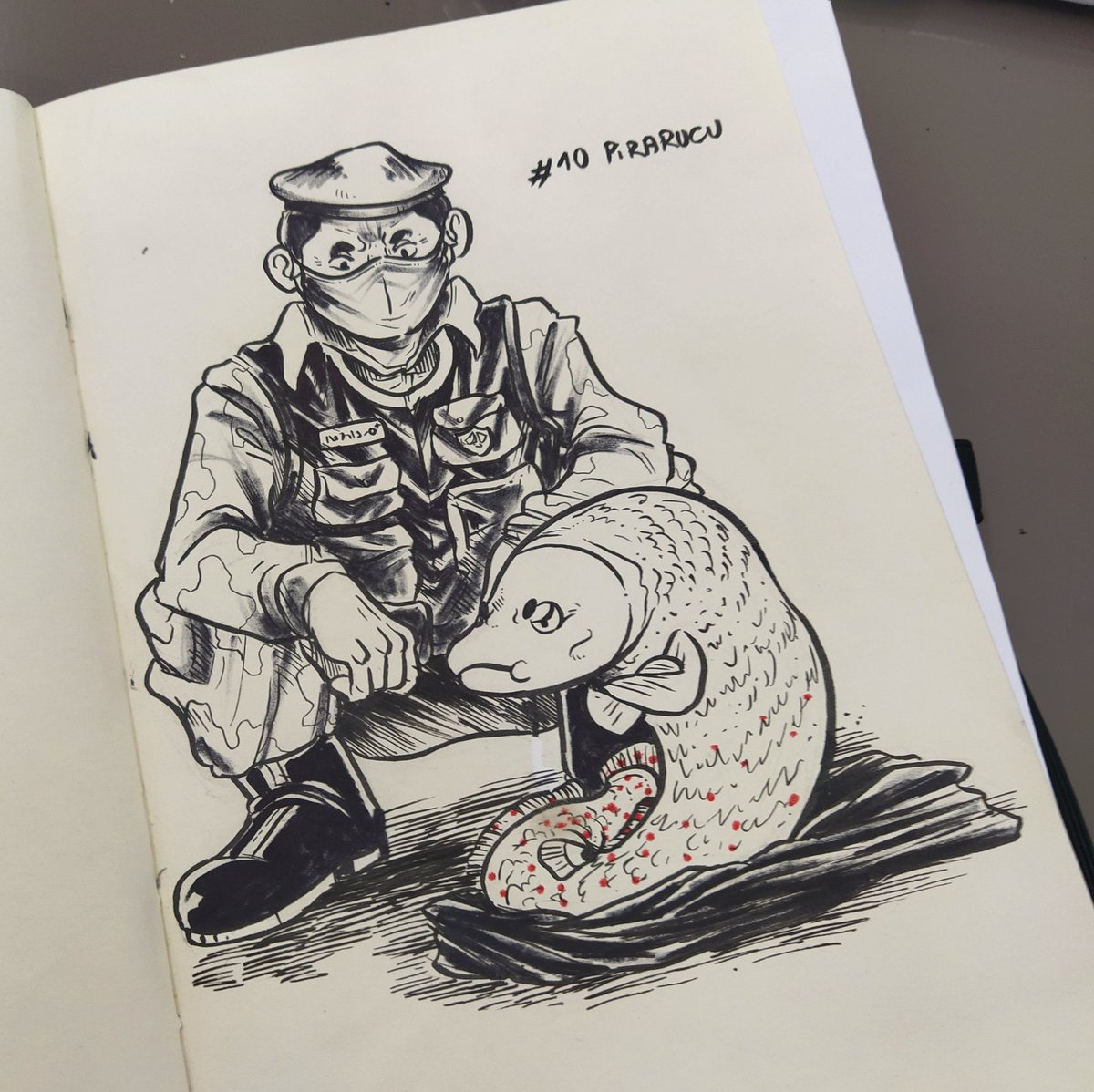 #10 pirarucu E lá vai mais uma vez o pirarucu ser apreendido pela polícia. #inktober2020 #inktober #tintatubro