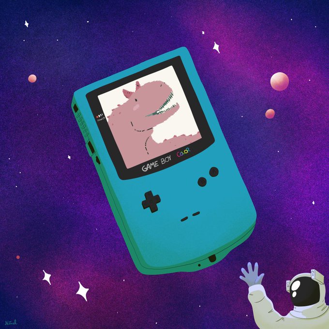 Day 16 : Game boy and space 💫 My first game console was a blue game boy color. I spent so many hours with it! And you, what was your first console? #oktoriette #morinktober #inktober2022