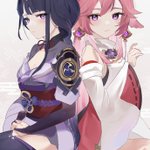 Yae&Ei ... follow me if you're interested with my art :) #yaemiko #RaidenShogun #GenshinImpact #八重神子 #雷電将軍 #原神