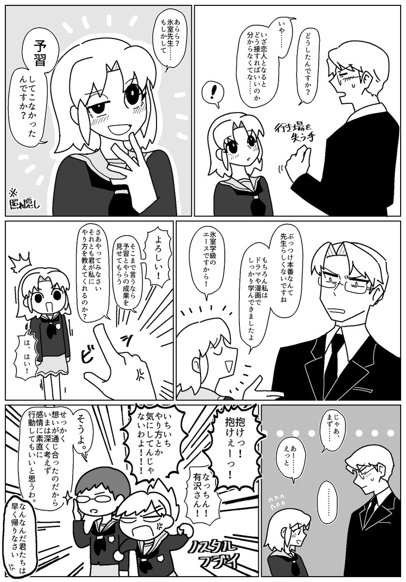 113 799 在学中デートするみかマリ見かけても自分のことがあるので咎められない氷室教頭のこと考えてました(みかマリ世界線だと氷室主くっついてそうだし…) 22/03/23 11:43