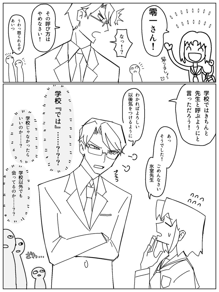 在学中デートするみかマリ見かけても自分のことがあるので咎められない氷室教頭のこと考えてました(みかマリ世界線だと氷室主くっついてそうだし…)