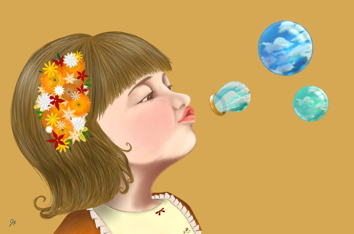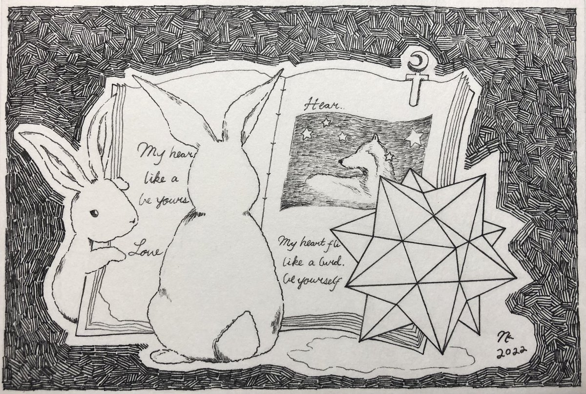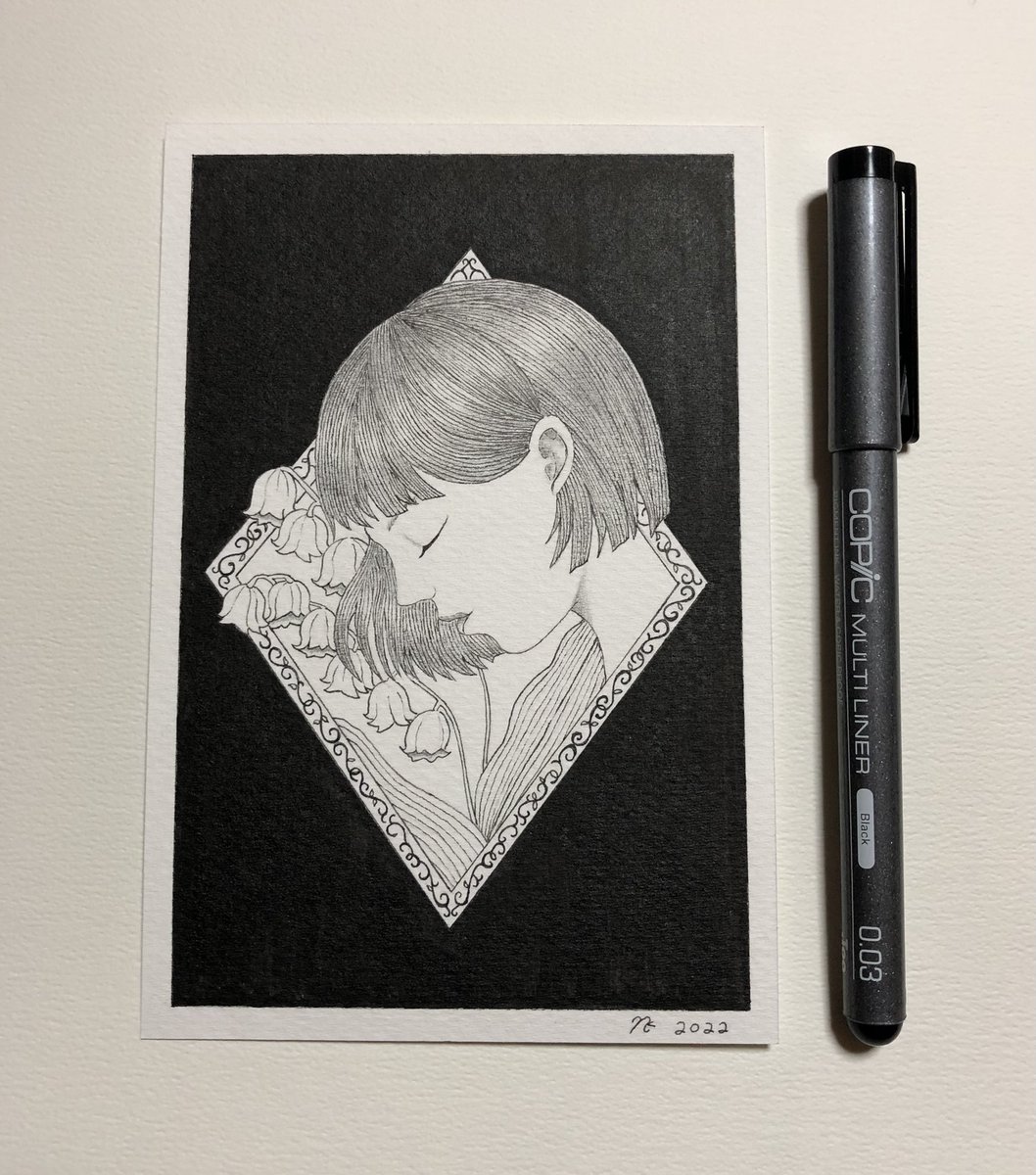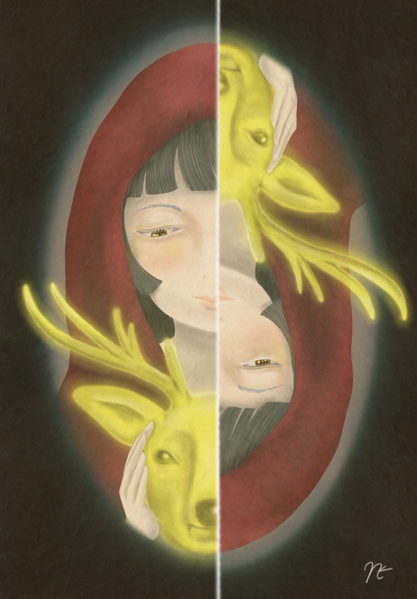 過去絵𓂃 𓈒𓏸 “feel” ──自分の内面世界に目を向けて そこにあるものを感じることは 鳥が空を飛ぶことに似ている. #イラスト #illustration #art #芸術の輪 #絵柄が好みって人がいたらいいなぁ