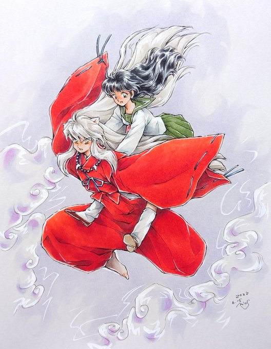四魂の玉を狙ってきた百足上臈を倒したあとかごめちゃんから四魂の玉を奪いたいイヌヤシャサン うっかり描いちゃったけどこのときまだ念珠してないよなw でも念珠つけられたあとも四魂の玉は狙ってるんでまあいっかー pixiv.net/artworks/10870…