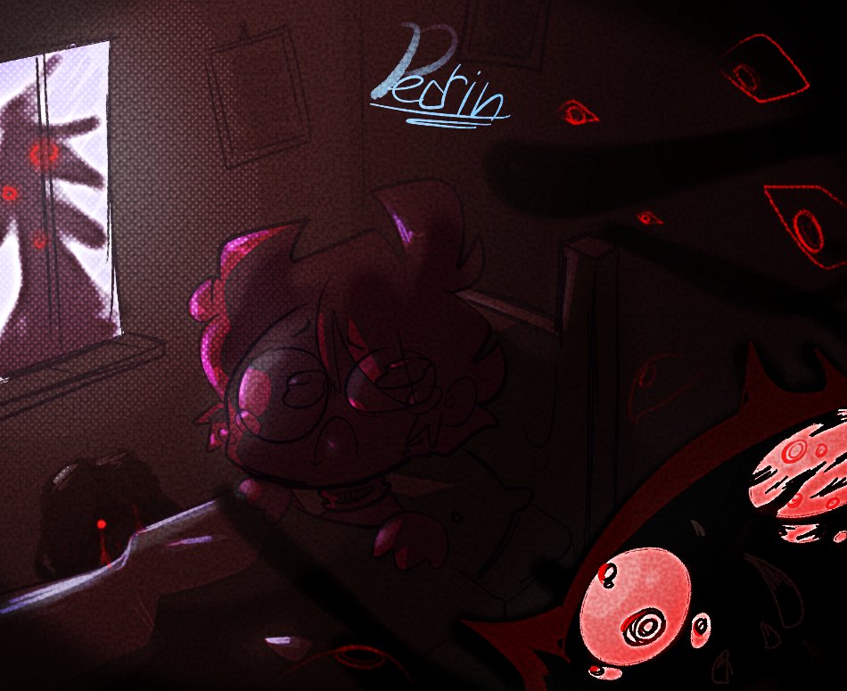Medo de quando eu era criança: quando tava de noite e eu ficava lembrando das creepypasta que minha irmã me botava pra assistir e ai pensava que tinha bixo me olhando, tbm o de quando caia um raio a luz dele fazia uma silhueta na parede :) #inktober2022 #inktober2022day9