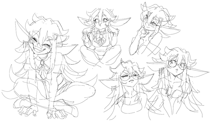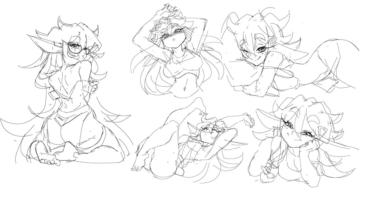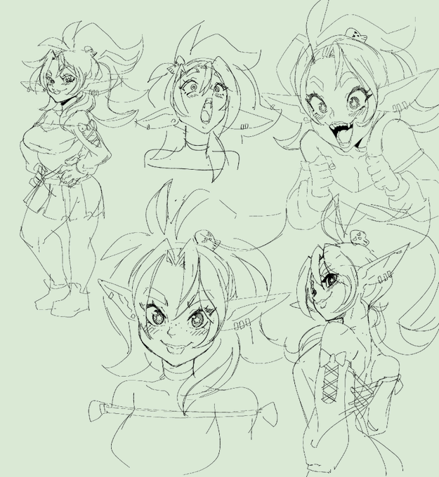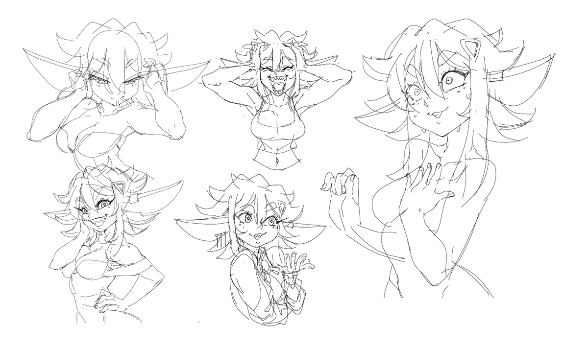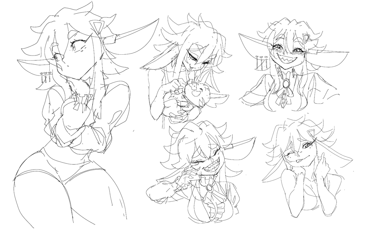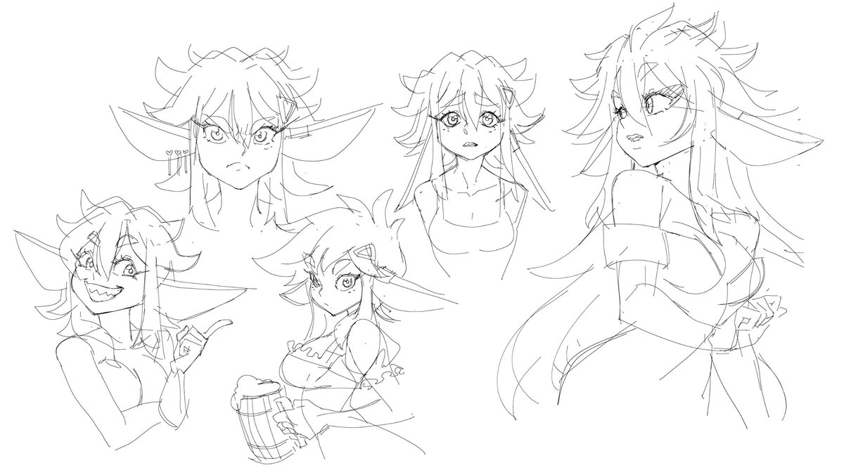 Super mega rough sketches of my character "Hilde". Was trying to understand better the char to polish her design.