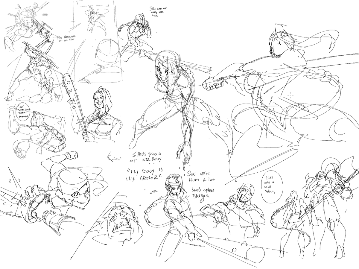 28 358 Super mega rough sketches of my character "Hilde". Was trying to understand better the char to polish her design. 23/03/15 07:58