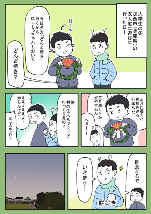 昔描いた どんど焼きのエッセイです(1/2)