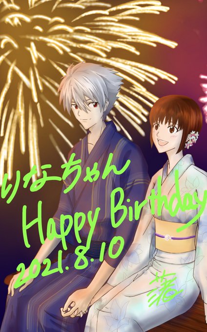 #落夢者 #エヴァンゲリオン #エヴァ #デジタルイラスト #絵師さんと繋がりたい #お誕生日イラスト #カヲルと花火デート りなちゃん祝お誕生日イラストです! 女子憧れのシチュ!!そしてユルいカップル繋ぎ!Mark.06カラー浴衣のカヲル!りなちゃんに着てほしい浴衣! 幸せなお絵描き時間でした♡