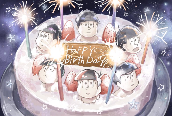 #松野家6つ子生誕祭お祝いイラスト #松野家6つ子生誕祭2021 むつごお誕生日おめでとう🎂!これからもゆるく楽しく続いてくれたら嬉しいです! 急遽描いた星を見上げるケーキなむつごでお祝い(ネタ何番煎じだろう…?)