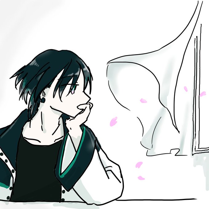 #にじさんじ五十音順に描いたら童田明治の時には画力上がってる説 その35弦月藤士郎。非常にミステリアスな雰囲気になる和装だと思う。歌声のバリエーションと安定感がグンバツな人。語彙が結構独特なところも好き