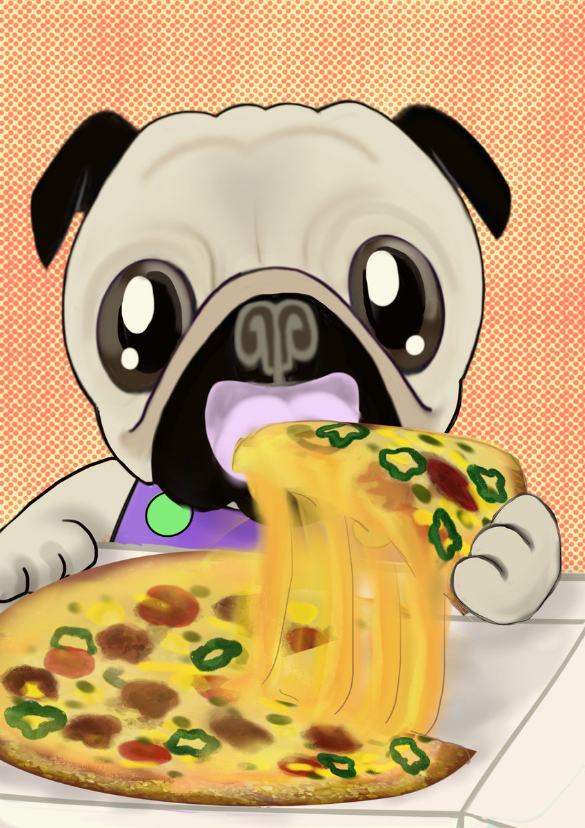 ピザを食べるパグくん。 #イラスト #イラスト練習中 #お絵描き #イラスト好きさんと繋がりたい #パグ #ピザ