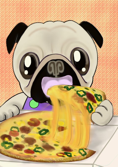 9 91 ピザを食べるパグくん。 #イラスト #イラスト練習中 #お絵描き #イラスト好きさんと繋がりたい #パグ #ピザ 22/12/13 21:05