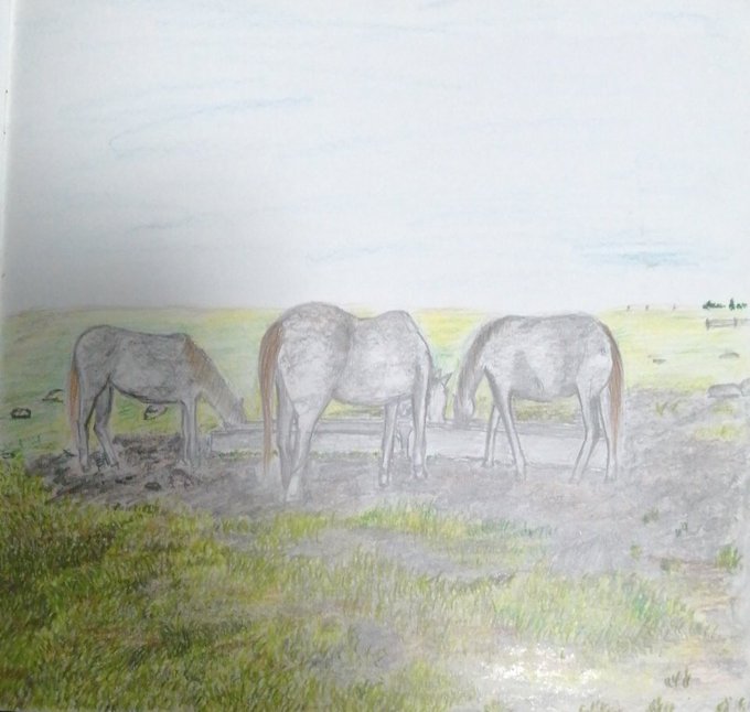 2 25 美ヶ原の馬たちです。 #色鉛筆画 22/08/19 14:45