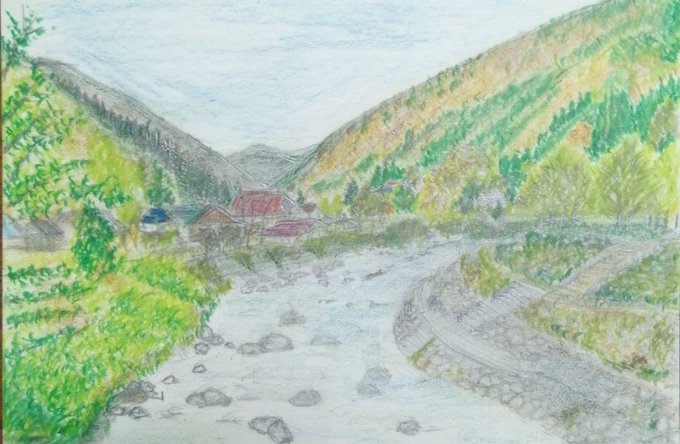 2 40 下呂温泉 2009年 #色鉛筆画 22/08/20 14:33