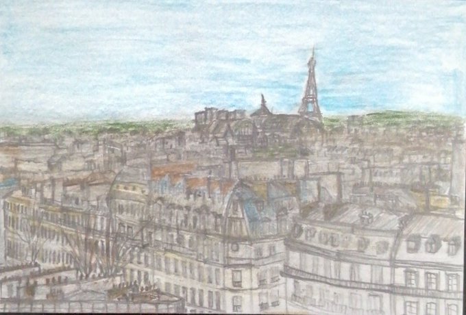 1 39 パリの町並み 2016年 #色鉛筆画 22/08/21 09:38