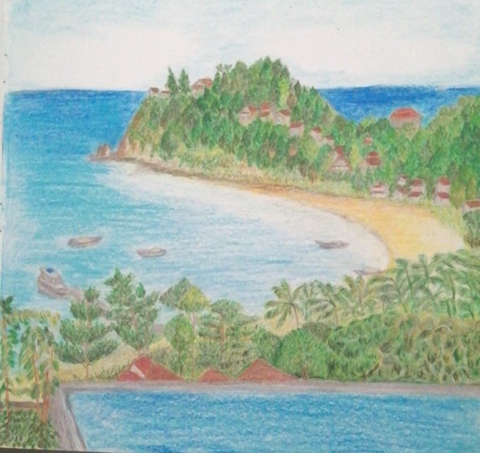 タイ ランタ島 Pimalai Resort 2008年 バンコクから飛行機でクラビへ 車で港まで移動し、船で海からホテルに到着。自然に囲まれ、海で遊んだり、山を散策もでき、また食事も充実していて最高でした! #色鉛筆画 #たい #ランタ島 #pimalairesort