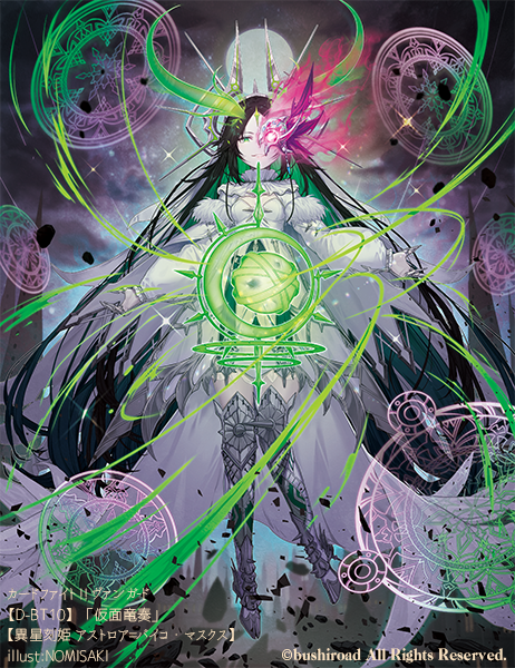 本日、04/07(金)発売 カードファイト!! ヴァンガード ブースター第10弾『仮面竜奏』にて 『異星刻姫 アストロア゠バイコ・マスクス』を描かせて頂きました! SECも収録されるそうなので、よろしくお願いいたします。 #ヴァンガード #cf_vanguard cf-vanguard.com/tcg/ cf-vanguard.com/deckrecipe/dec…