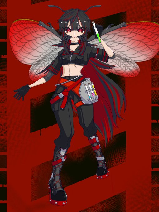 今日も一日おつあり🐜 虫のキメラのVモドキがデフォルト衣装キービジュアルを公開! 手癖に合わせて見た目変えた!前より相応の背丈に見えるのではないだろうか! こだわりは全部! ▶︎youtube.com/@no.7244 #VTuberを発掘せよ #Vtuber推し探しにどうぞ #イラスト トンボ羽大顎の差分あり🐜