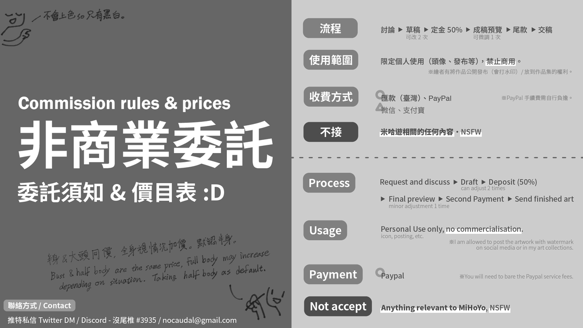 47 194 【非商業委託接稿中】 先試試水,接到一定數量可能會關閉委託🙏 【Opening Personal Use commission!】 Testing the water first, so will close when the slots are full. 22/09/18 15:10