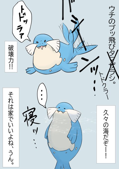 ブッ飛びタマザラシ4 飼い主「無念…」 タマ「マ“ッ!!」 飼い主(飼い主よりご飯かぁ…そうかぁ…知ってた…) 後に長時間お説教コース行き #イラスト #絵描きさんと繋がりたい #イラスト好きな人とつながりたい #ポケモンと生活