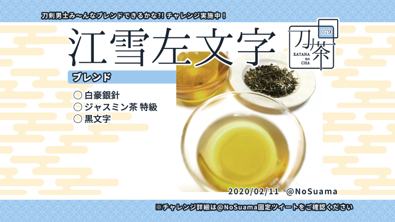 #江雪左文字国宝指定記念日 実は江雪にいさまのブレンドティーもあるんです。 ジャスミンが香る、爽やかなブレンドです。 あの長い髪の毛から、そんな香りしそうじゃない。