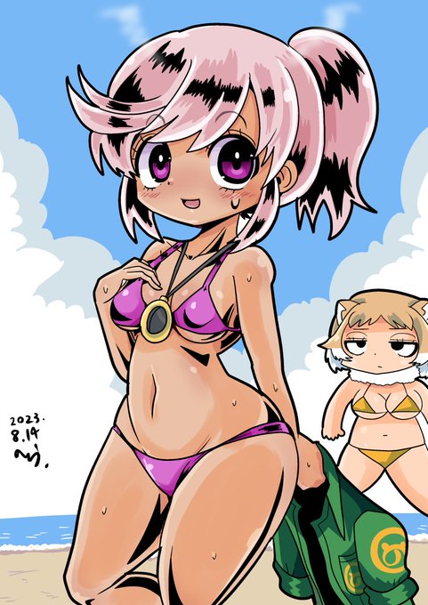 98 248 朝に描く、厚塗り風ビーチクイーン水着マルちゃん 23/08/04 08:04