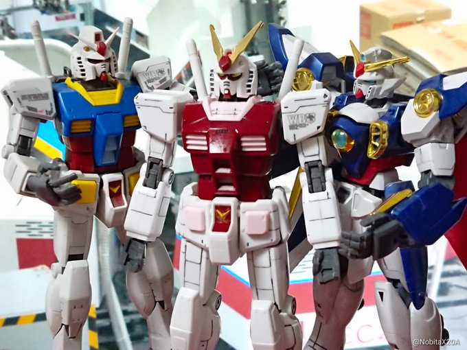 週末は久しぶりに #ガンプラ を組み立てた。センターの機体ね。 何年前に買ったものか忘れたけどボディー色の違う #ガンダム だよ。 アンテナはカスタマイズ品です。
