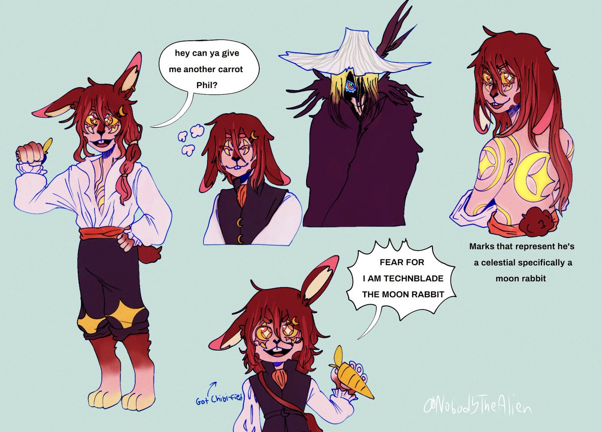 Doodles and concepts of bunnyblade and yes the markings glow (Ft. Scary bonkers bird man phil) #OriginSMP #originsmpfanart #emeraldduo #technobladefanart #technofanart #technoblade #bunnyblade Retweets, likes and comments are beloved!!