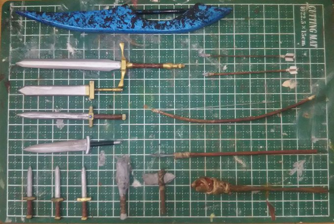 #夜のフィギュア撮影会 11/8 お題 『刃』一部既出 杖とか弓、棍棒なんてのも作ったことはありますが、私が作った武器は大半が刃を持つ武器ばっかりですね (´・ω・)昔から時代劇とか観て育ったからか、刀や剣には他の武器以上のロマンを感じるのよね