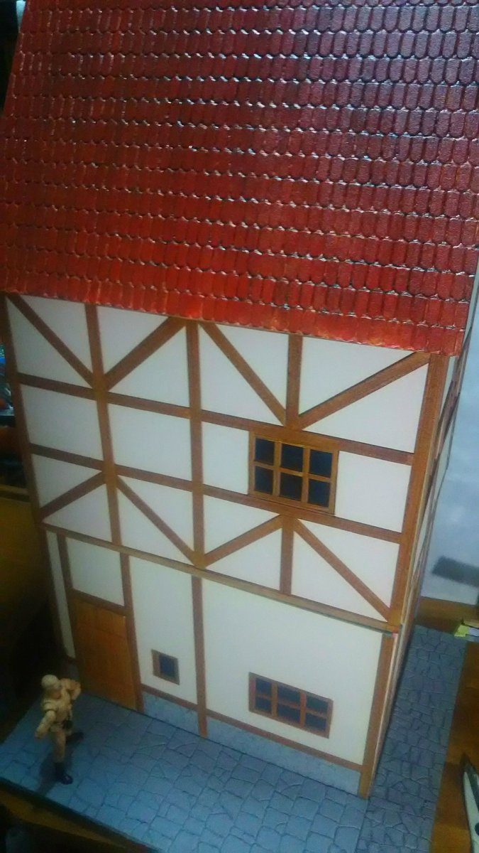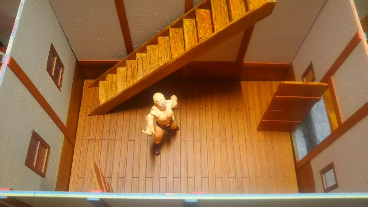 #夜のフィギュア撮影会 11/17 お題 『家』既出 以前作った1/12スケールの家 分解収納可能で、2階建てとしても使えて組み換えて1階としても使える自信作でした😄 が、 組み立てに異常に時間がかかったり、組み立てても簡単に壁が倒れたりと、あまりの使い難さに全然使ってない😅 (´・ω・)ぴえん