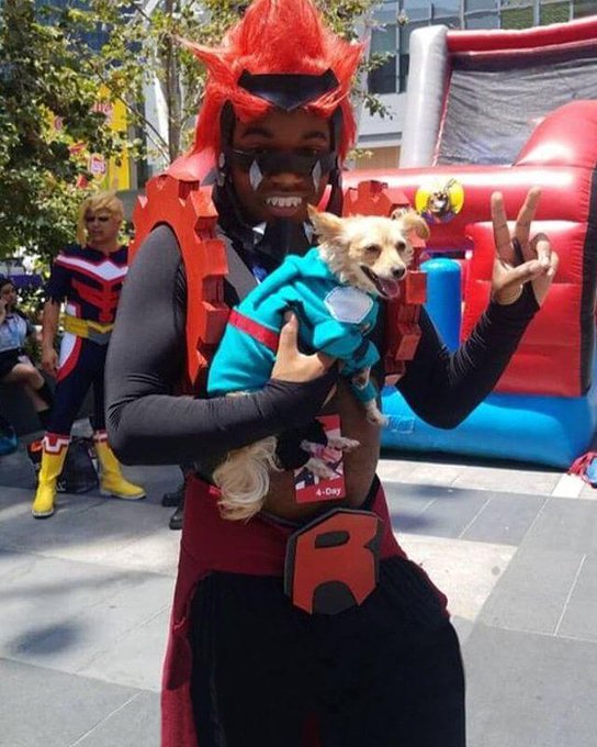 Its ya boi Kirishima and pupper Deku! I really miss AX man, such a good time. Enjoy y'all 😁😁😁 #MyHeroAcademia #cosplay #kirishimacosplay #redriot #animeexpo2018 #pupperdeku