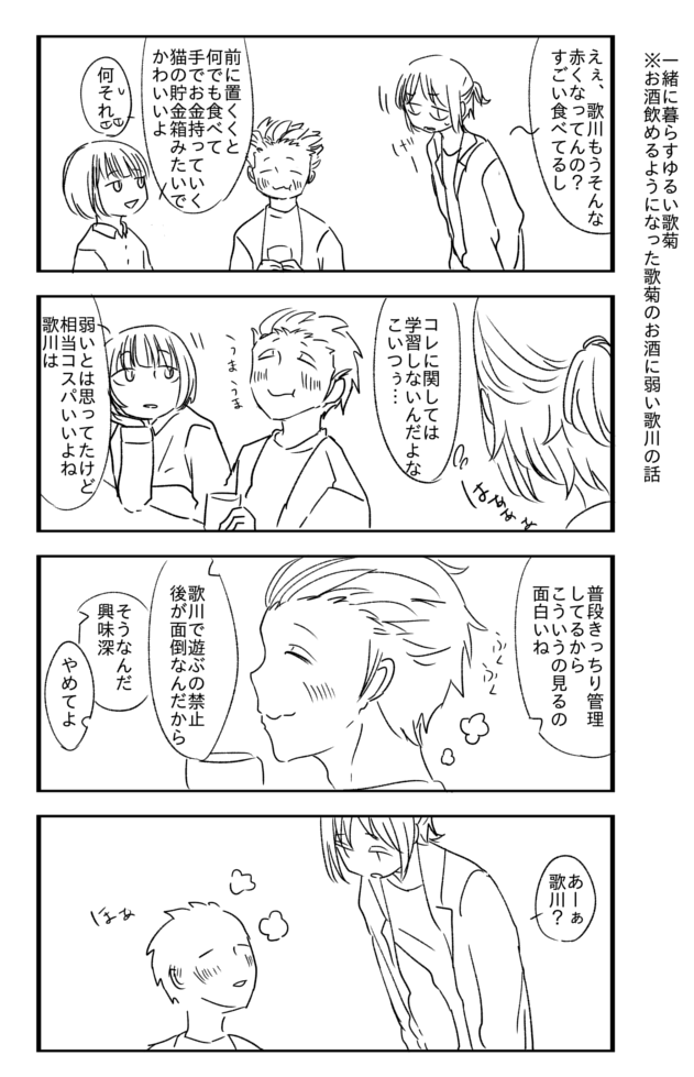 12 39 日曜AM3時頃にはっぱさんと話していた歌菊のお酒に弱いうたがわくんのらくがき4コマ すぐ眠くなる「赤ちゃんか!」 22/02/14 00:59