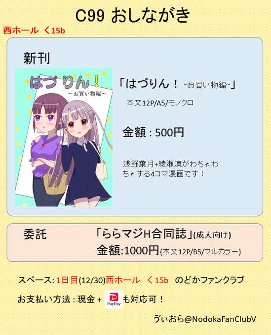 のどかファンクラブ webcatalog-free.circle.ms/m/Circle/16201… #C100WebCatalog C100受かっちゃった 日曜日 東ウ34a ららマジの何か出します
