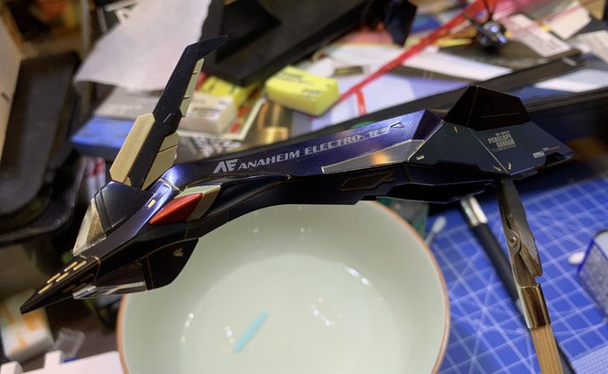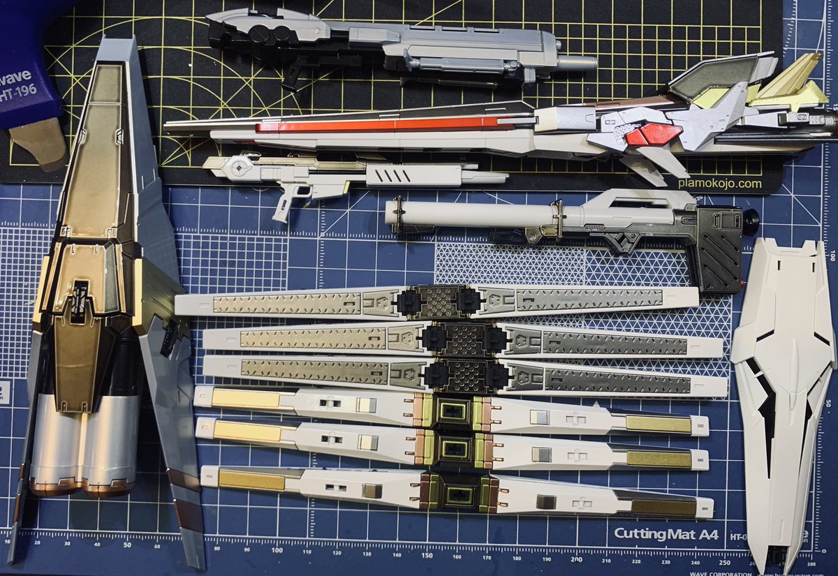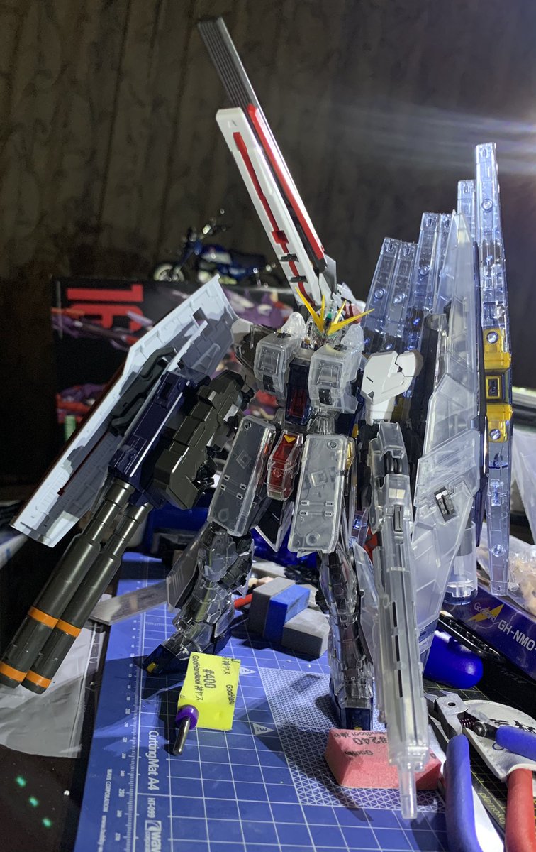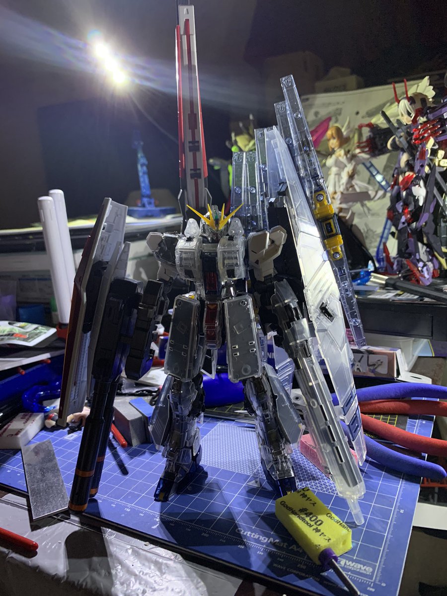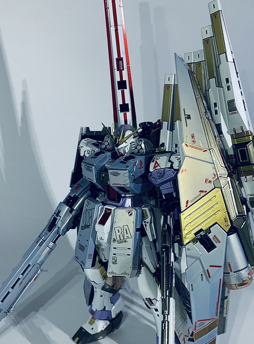 現在製作中のνガンダム (HWS+ロングレンジ・フィンファンネル) 無事残り2パーツの塗装が終われば墨入れデカールで完成しそうです。 近日中に公開するのでよかったらいいねとRTしてくれるとめっちゃ嬉しいです!!!フォローもおなしゃす! #ガンプラの画像を貼るとRTされると聞いて #ガンプラ