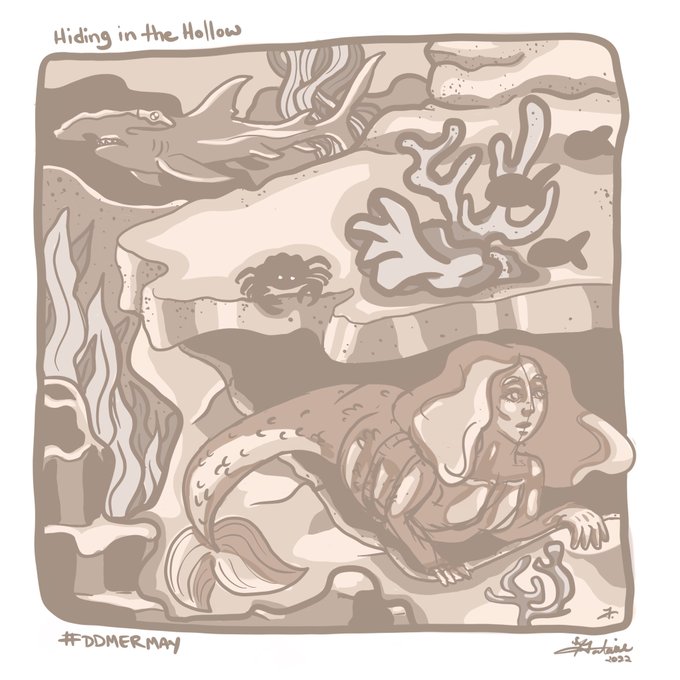 I had a few ideas for #ddmeemay #promt Hollow but quickly whipped up idea #3 - which had a more straight forward concept 😉 this was a quickie (spent less than 2 hours on it), but still was fun to squeeze in. Let me know what you think! #mermay #mermay2022 @Procreate #digitalart